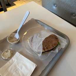 I've walked past here maybe 25 times in my 2 months living in the neighborhood but never ate her - until this afternoon! A friend and I were meandering down 2nd Ave., chatting while keeping an eye out for a lunch spot. She had the falafel pita, I had the sabich pita (& chose whole wheat pita). Each came out really stuffed and perfectly seasoned, with a little container of hot sauce (zhug?) and another of tahini sauce. We sat outside at a little table on 57th St.; at least it's a fairly wide sidewalk so every unmasked person or smoker who walks by isn't real close to the table. While I waited inside for our sandwiches (my friend claimed the table outside; there were 2, and one long bench between them), a delivery person walked out carrying a huge, tasty-looking platter of sushi! I guess there are a lot of things I still need to try!